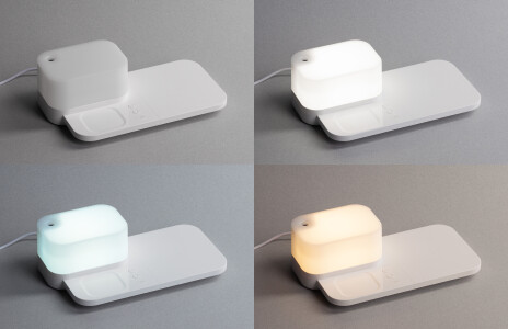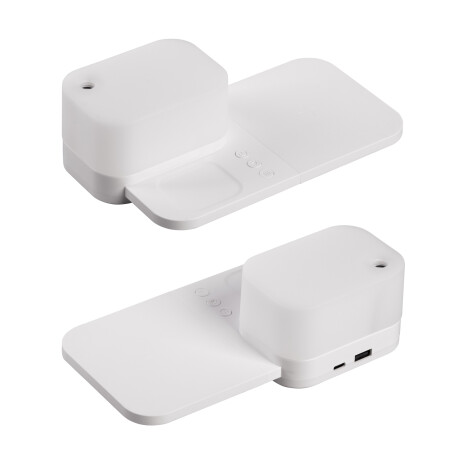 Smart Base сочетает популярные функции: зарядка, подсветка и увлажнитель. Рекомендуется подключение через сетевой адаптер номиналом не менее 5V/2A, чтобы в полной мере использовать характеристики устройства. Лампа работает в трех режимах - теплый, холодный и сбалансированный свет, яркость можно регулировать. Два режима работы увлажнителя 8 мл/час и 16 мл/час.