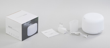 В стильном эргономичном корпусе белого цвета он вмещает 500 мл воды, - этого объёма хватает до 4х часов непрерывной работы. Кроме того, он поддерживает многоцветную LED-подсветку с разной степенью интенсивности, что позволяет использовать его как ночник.