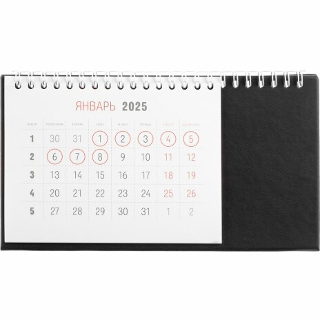 Настольный, перекидной календарь-домик выполнен из материала Latte, черный АА.