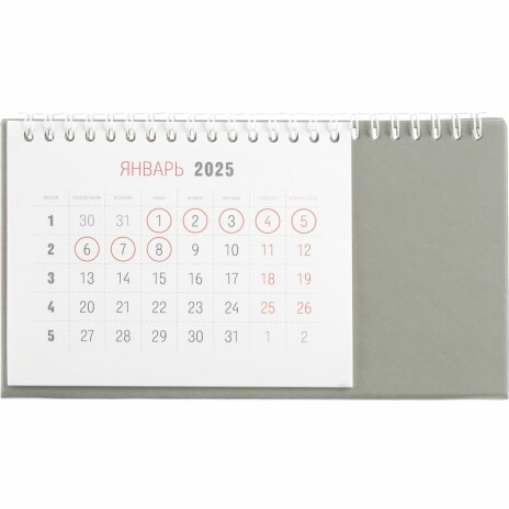 Настольный перекидной календарь-домик выполнен из материала Latte, серый СС.