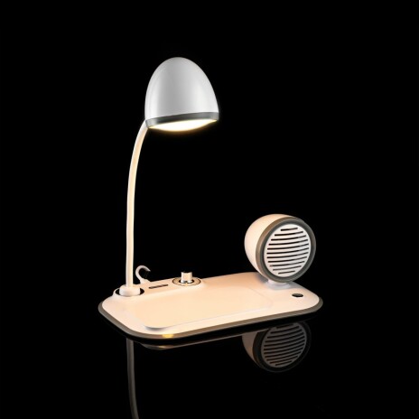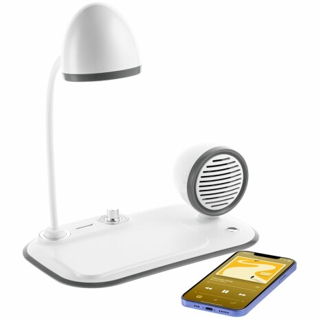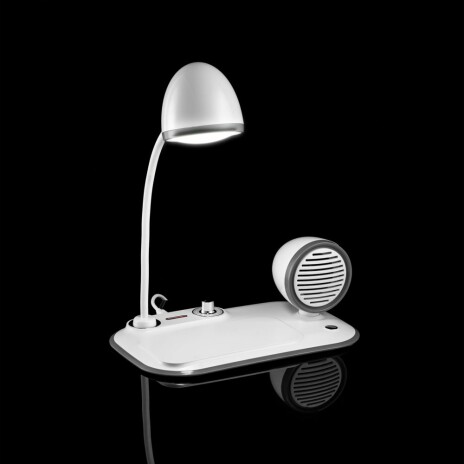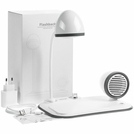 - Лампа с колонкой и беспроводной зарядкой Flashback, белая
