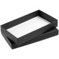 Коробка выполнена из переплетного картона, кашированного гладкой дизайнерской бумагой Malmero.