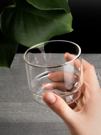 Бокал Thumbler с тонкими стенками из боросиликатного стекла идеален для подачи прохладительных напитков или айс-кофе. Оригинальная форма и минималистичный дизайн бокала гармонично впишутся в современный интерьер кухни или столовой.