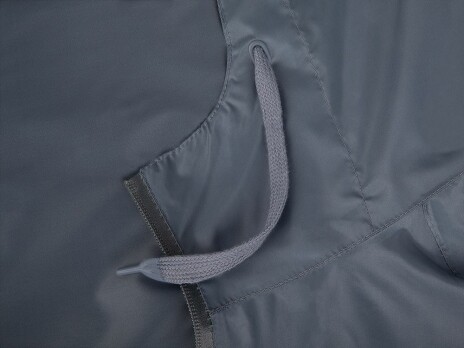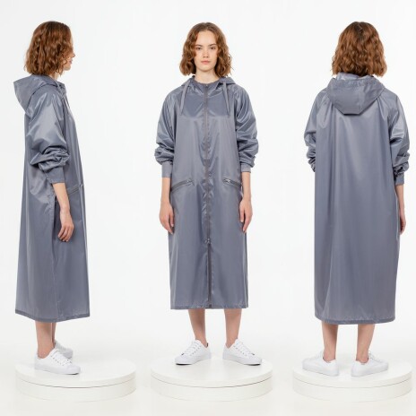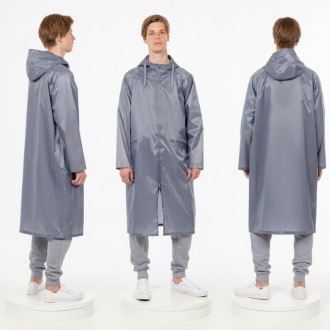 Плащ-дождевик на молнии с капюшоном из ткани таффета с полиуретановой пропиткой для защиты от сильного дождя.