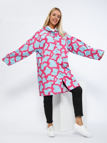 Дождевик на кнопках с глубоким капюшоном со шнурком.