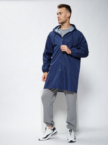 Легкий городской дождевик классической модели на кнопках с регулируемым капюшоном из влагоустойчивого материала подходит для защиты в непогоду, компактно упаковывается в чехол.