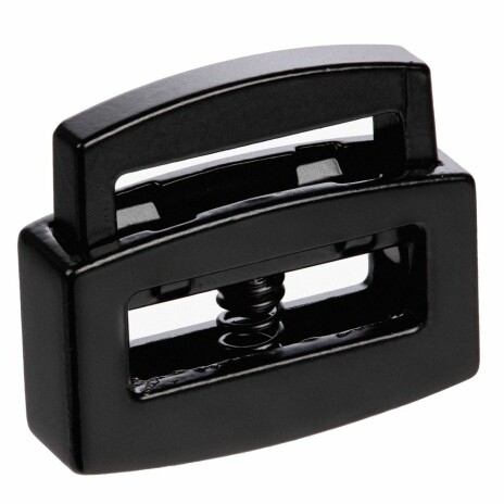 Для установки необходимо нажать на кнопку фиксатора и пропустить шнур через отверстие. Подходит для лент шириной до 1 см или для круглых шнуров и резинок диаметром до 0,5 см.