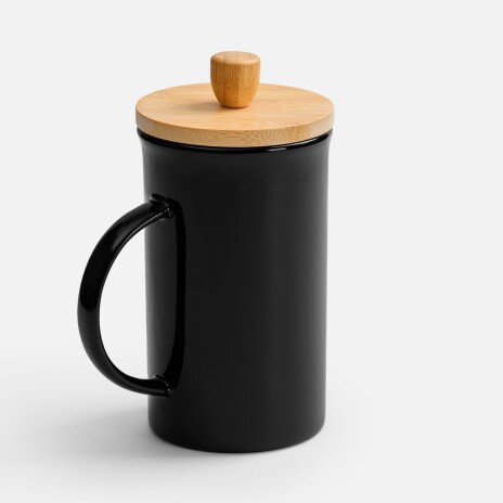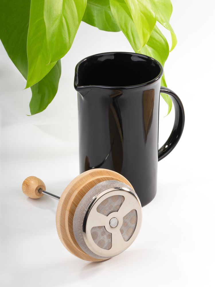 Элегантный керамический френч-пресс Mezzo в глянцевом черном исполнении — функциональный кухонный аксессуар и украшение любого пространства, от уютной домашней кухни до стильного офиса.Емкость 600 мл.