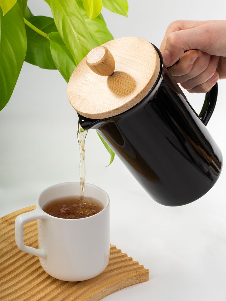 - Материал: каменная керамика; крышка - бамбук; ситечко - нержавеющая сталь, 304
