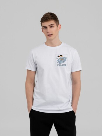 Дизайн принта: Яков Коган.Классическая кроеная футболка унисекс из гребенного хлопка. Благодаря тонким и длинным волокнам хлопка ткань футболки отличается гладкостью, ровностью и прочностью, отлично сохраняет форму, не деформируются и не выцветает при стирке. Горловина выполнена резинкой 1x1. Слегка приталенный силуэт.