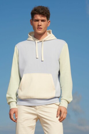 Трехцветное утепленное худи унисекс из органического хлопка и переработанного полиэстера.