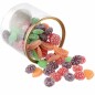 Состав: сахар, патока, вода, регулятор кислотности (лимонная кислота, молочная кислота), ароматизаторы (малина, апельсин, яблоко, смородина), красители (аннато, хлорофиллин, куркумин, концентрат батата, редиса и яблока).