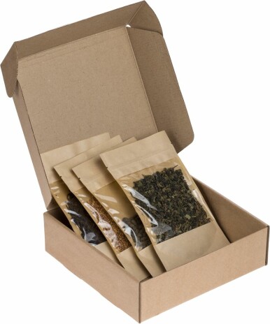 Самосборная коробка-шкатулка из неокрашенного микрогофрокартона.