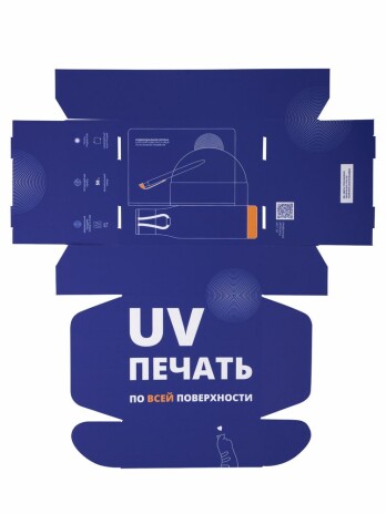 В стоимость входит полноцветная печать с лицевой стороны. Печать производится на UV-плоттере непосредственно на листе картона, минуя стадию каширования.