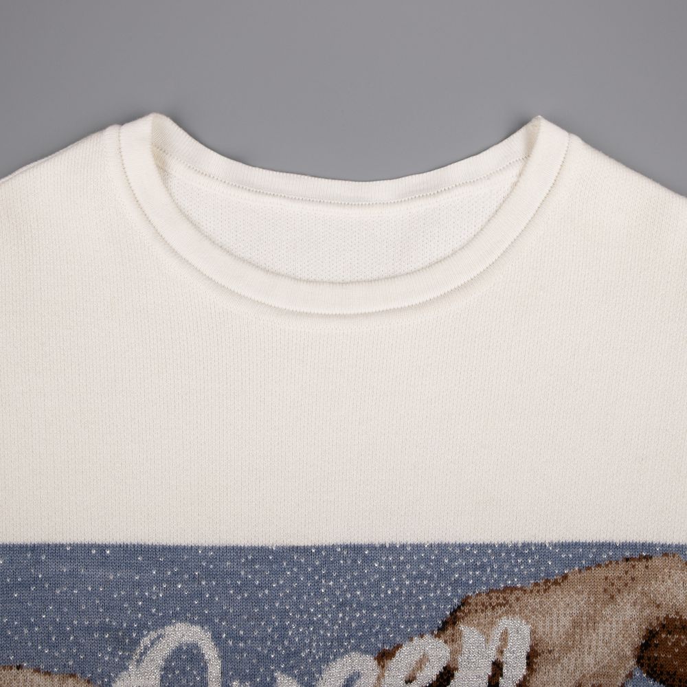 Основа лонгслива всегда вяжется из смесовой пряжи из хлопка и акрила, жаккардовая вставка — из полушерсти.