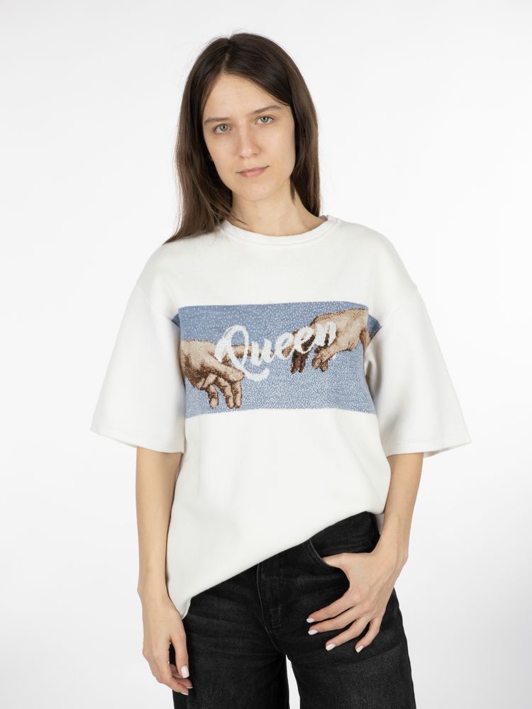 Модель: лонгслив унисекс жаккардовой вязки на спинке или полочке, мелкая петля, прямой силуэт, спущенное плечо, рукав втачной. Рукав может быть длинным или 3/4, стоимость не меняется.