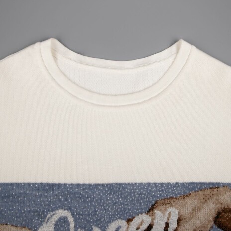 Лонгслив унисекс с вывязанным логотипом и индивидуальным рисунком в фирменной цветовой гамме.