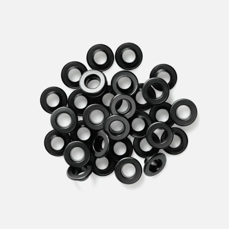 Не подходит для установки на трикотаж. Предназначен для укрепления краев отверстий, используемых для продевания стропы, шнурков, резинки. Легко послужит и элементом дизайна.