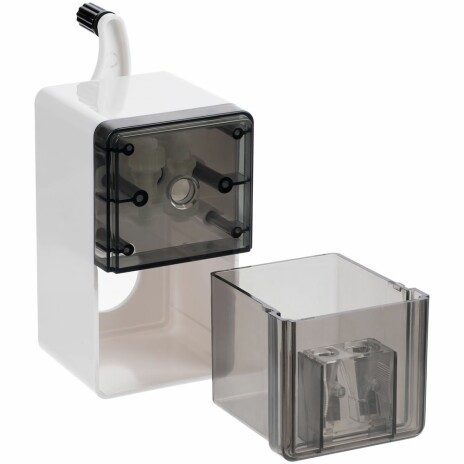 Также точилка оборудована прозрачным контейнером для стружки — удобно контролировать уровень заполнения. Внутри контейнера предусмотрена дополнительная ручная точилка для карандашей большего диаметра.