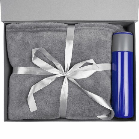 - Материал: термос - нержавеющая сталь, корпус; пластик, крышка; плед - полиэстер 100%, длинноворсный флис, 220 г/м²; коробка - переплетный картон