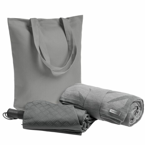 - Размеры: сумка: 35х38х5 см, ручки: 54х2,5 см; плед: 90х160 см; зонт: длина 57 см; диаметр купола 97 см