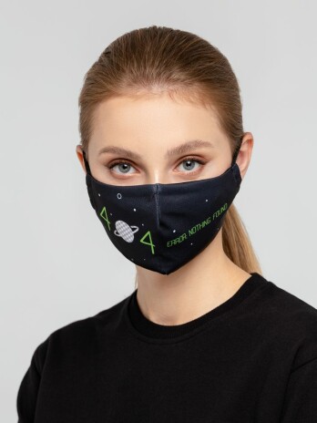 Набор из трех многоразовых масок из дышащей ложной сетки с ярким принтом с гигиенической хлопковой подкладкой и заушниками-резинками.