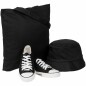 - Материал: сумка - хлопок 100%; панама: верх - хлопок 100%, подкладка - полиэстер 100%; кеды: верх - хлопок 100%; металл, текстиль, резина