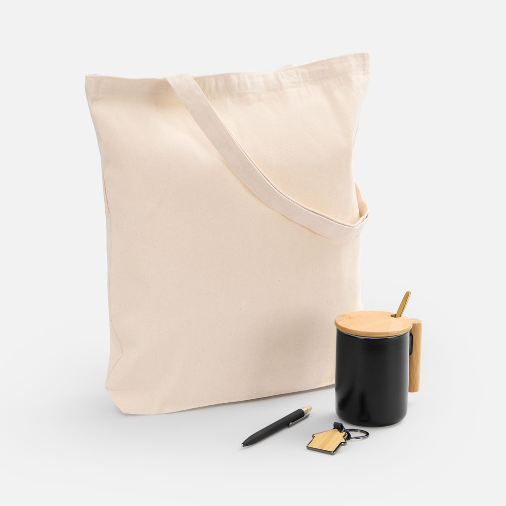 В комплекте: полезные и функциональные аксессуары с деталями из бамбука, упакованные во вместительную холщовую сумку. Все для вдохновенных идей и продуктивных дней!