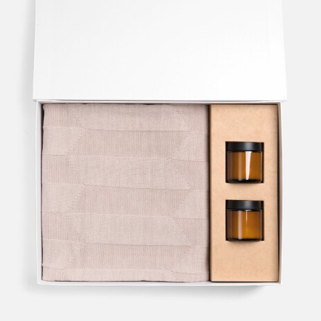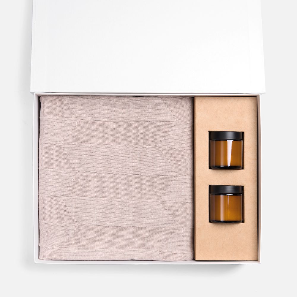 - Материал: плед - акрил 100%, плотность 286 г/м²; подсвечник - стекло, крышка - пластик; свеча - парафин, соевый воск, парфюмерная композиция; коробка - переплетный картон, бумага Majestic