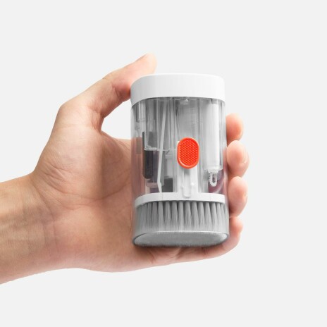 - В комплекте: большая щетка, салфетка для ухода за дисплеем, контейнер для жидкости, пластиковый пинцет, щетка с жесткой щетиной, щетка с мягкой щетиной, чистящее перо со щеткой для наушников, насадка для чистки кейса от наушников, ершик для чистки кейса от наушников, щетка с короткой щетиной, щетка с наклонной щетиной, двусторонняя насадка для чистки разъемов зарядки, двусторонняя насадка для чистки камеры, инструмент для продувки, дуговой пинцет, ключ для отсека SIM-карты, инструмент для извлечения поврежденных ключей