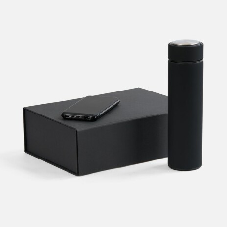 - Материал: аккумулятор - пластик; покрытие софт-тач; термос - нержавеющая сталь, 304; покрытие софт-тач; коробка - переплетный картон