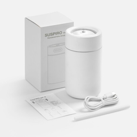 Настольный увлажнитель воздуха Suspiro насыщает влагой воздух в помещении, обеспечивая комфортную и здоровую среду в течение всего рабочего дня. Благодаря компактному размеру его легко разместить на рабочем столе.