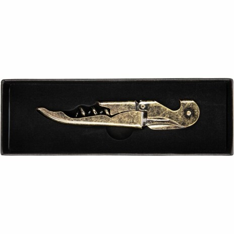 Нож выполнен в оттенке античного золота с эффектом потертостей — как будто из поколения в поколение предавался в семье виноделов, и с его помощью была откупорена не одна бутылка. Эта версия особенно удачно впишется в интерьер кухни, винотеки или ресторана, если они оформлены в неоклассческом, классическом американском или прованском стилях.