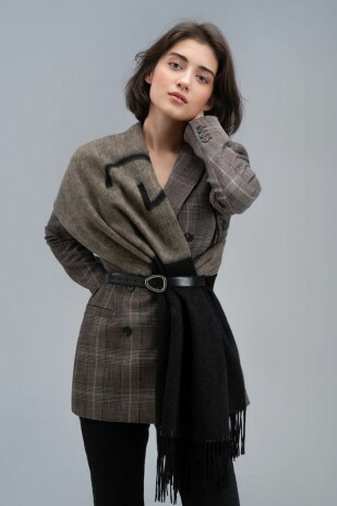 Объемный палантин Charming с геометрическим рисунком добавит строгому образу легкости и задора.