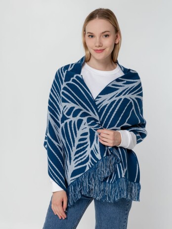 Модель: палантин жаккардовой вязки, плотный и теплый, 2-3 цвета нитей, гладкая поверхность, вывязанная бахрома длиной до 10 см. Воспринимается как односторонний из-за ряби на изнанке.