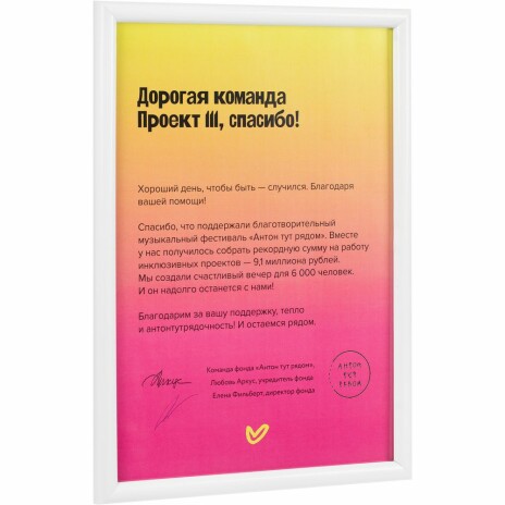 Белая рамка для дипломов, сертификатов и благодарственных писем формата А4. Переместив крепление на заднике, можно повесить вертикально или горизонтально.