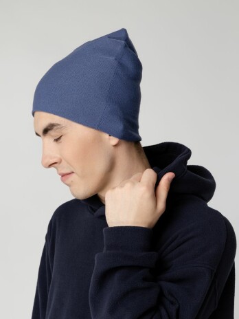 Двухслойная шапка-бини тонкой вязки, которую можно носить как с подворотом, так и без.