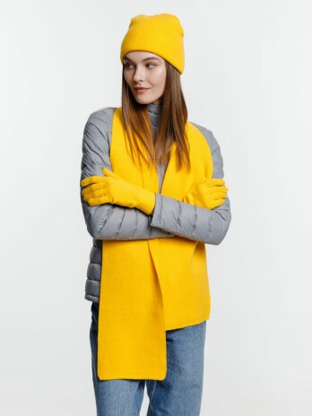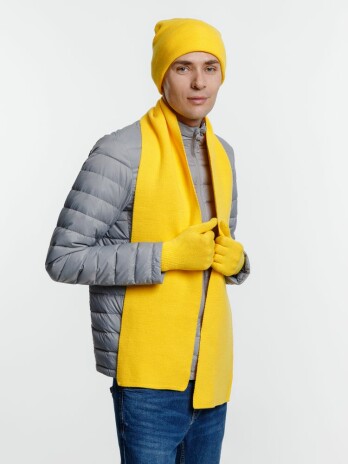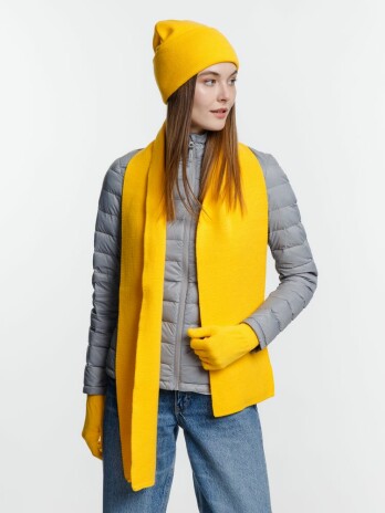 Двухслойная шапка из акриловой пряжи с регулируемым отворотом 7–10 см.