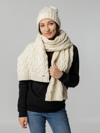 Длинный фактурный шарф — классика, которая не устаревает. Такая модель добавит уюта и шарма в зимний образ, станет его притягательным акцентом.