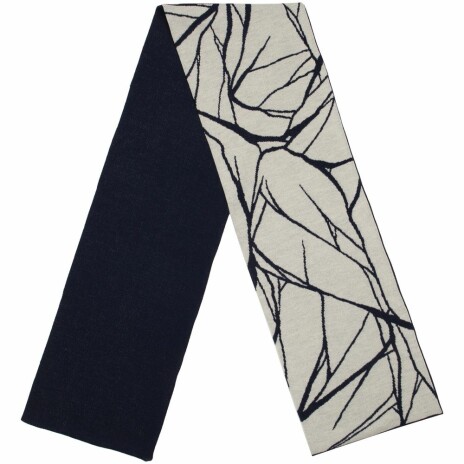 Модель: классический двуслойный шарф с жаккардовым узором в 2-3 цвета. Шарф вяжется сплошным полотном, затем его складывают пополам и сшивают так, что обе его стороны получаются лицевыми, а изнанка не видна. Это позволяет вывязывать на разных сторонах разные узоры.
