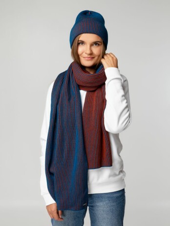 Двойное вязание в универсальной коллекции вязаных аксессуаров Nobilis создает настоящий стереоскопический эффект: один тон нитей оттеняет другой, а само изделие словно переливается. Легкого блеска добавляют акцентные цвета серии с эффектом «металлик».