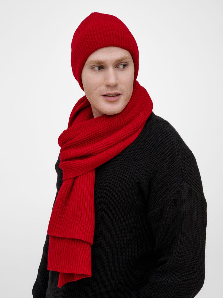 Широкий шарф из мягкой полушерстяной пряжи с выразительной фактурной вязкой создает современный запоминающийся образ.