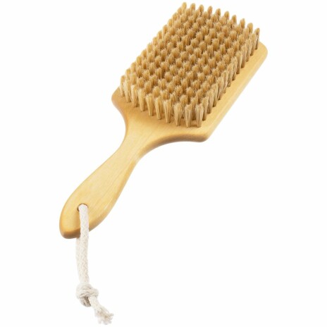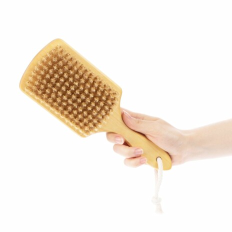 Щетка изготовлена из экологичных материалов. Натуральная щетина средней жесткости защитит кожу от мелких повреждений, подарив только самые приятные ощущения.