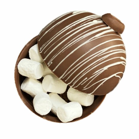 Состав: сфера из молочного шоколада, кофе растворимый сублимированный, какао алкализованный, маршмеллоу.