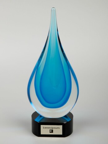 Стелой ручной работы Glass Onion легко отметить тот факт, что в успехе важен вклад каждого сотрудника. Особенно органично стела впишется в награждения компаний в газовой и водной промышленности.Награда в виде капли с основанием из черного стекла.