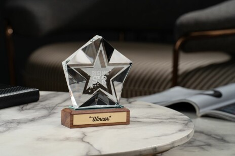 Награда изготовлена из стекла К9, в основе которого лежит оптическое боросиликатное стекло. Эту марку стекла отличает низкий процент посторонних включений, высокий показатель преломления и высокая прозрачность — идеальные качества для изготовления наград премиального уровня.