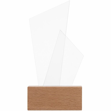 Стела Twin — это массивное основание из бука с гладкой фактурой и легкая прозрачная вставка из двух листов акрила. Идеальный баланс устойчивости и легкости, который важен не только для создания награды привлекательной формы, но и для достижения результата, который этой наградой будет отмечен.