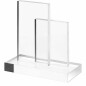Элегантные линии и прозрачный материал придают стеле Doublet эстетическую привлекательность, позволяя ей гармонично сочетаться с любым интерьером — от офисов до выставочных залов. Акрил (оргстекло) отличается прочностью и легкостью, что обеспечивает долговечность и устойчивость к повреждениям. Благодаря двухуровневой конструкции стела станет прекрасным холстом для идей и творчества и позволит создать уникальную награду со множеством элементов дизайна.