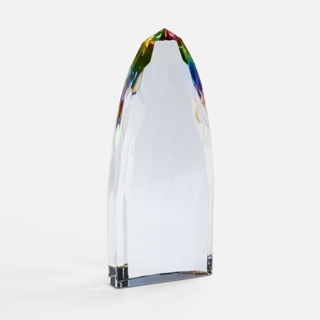Объемная высокая стела Gleampeak олицетворяет стремление к победам и блестящий успех, свет от которого будет еще долго разливаться вокруг. Необычная форма с легкой огранкой и плавно скошенными краями усиливает визуальный эффект и создает притягательные отблески по всей стеле — она словно светится изнутри! Такое разноцветное свечение — яркий символ творческого подхода, который окрасит в разные оттенки любое дело.