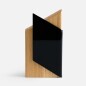 Majestas — уникальная стела с необычным дизайном. Выполненная из цельного бруса ясеня и гнутого цветного акрила эта стела станет украшением любого интерьера.